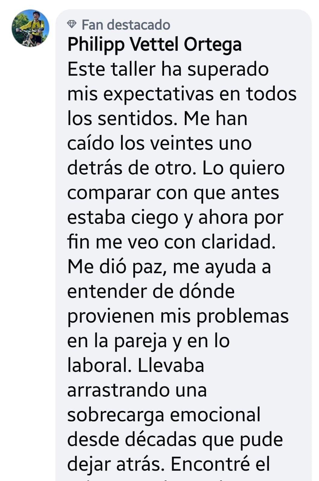 Más de 850 personas que han vivido situaciones de duelo, infidelidad, relaciones tóxicas, alcoholismo, drogadicción o incluso intento de suicidio, han tomado el taller y quieren compartir contigo su experiencia.